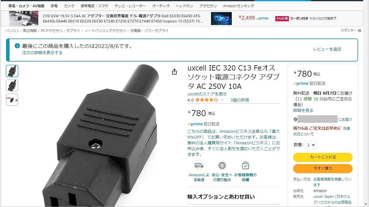 中身はIEC 320 C13…メスのソケットというのかコネクターというのか(^^ゞ