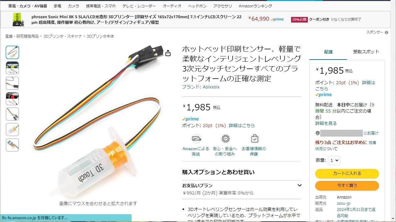 当然Ender3で動いていた新しい方のセンサーを組み込んだのですが