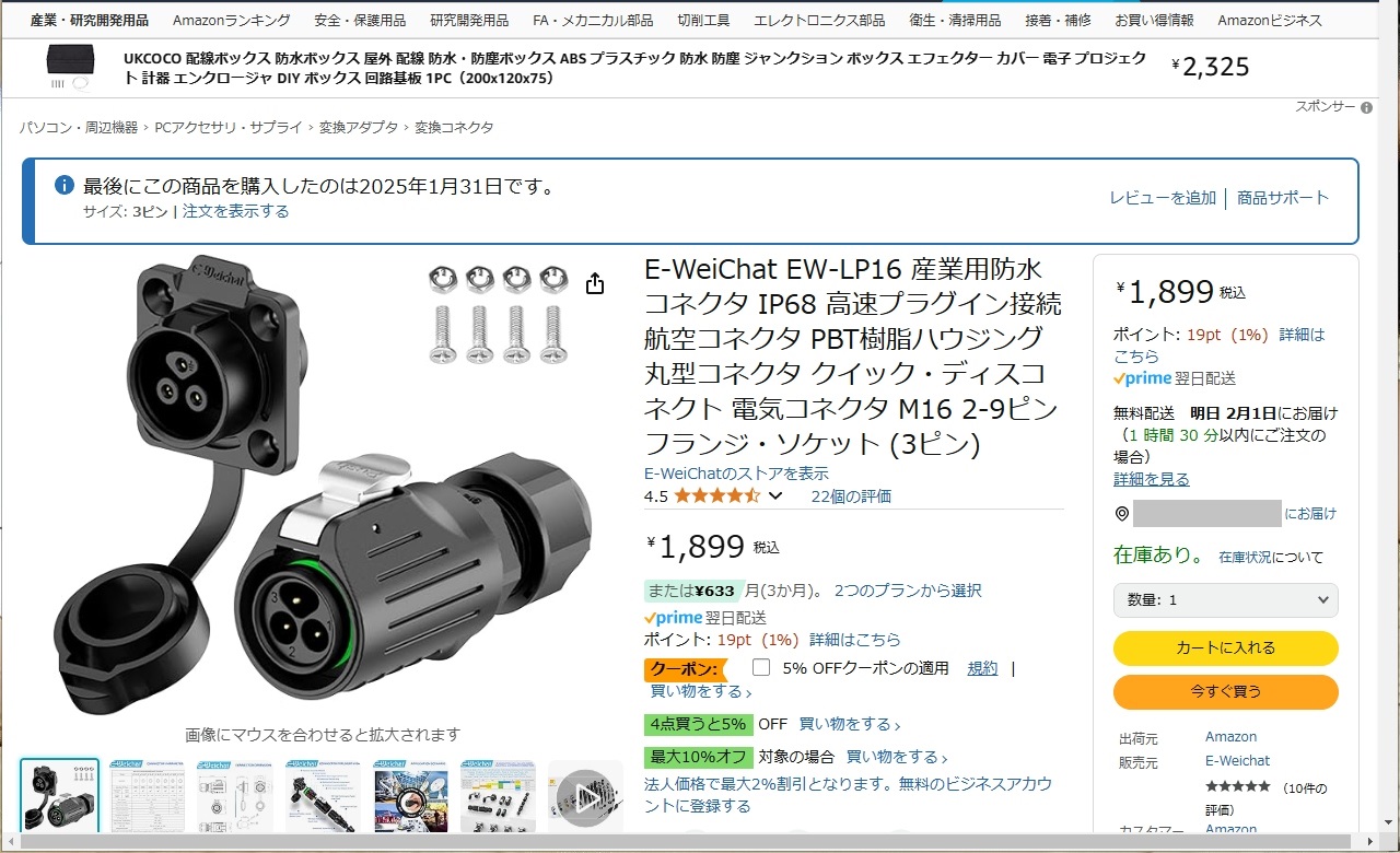 …全く舌の根も乾かないうちにコネクターを買ってしまってコムスの充電を