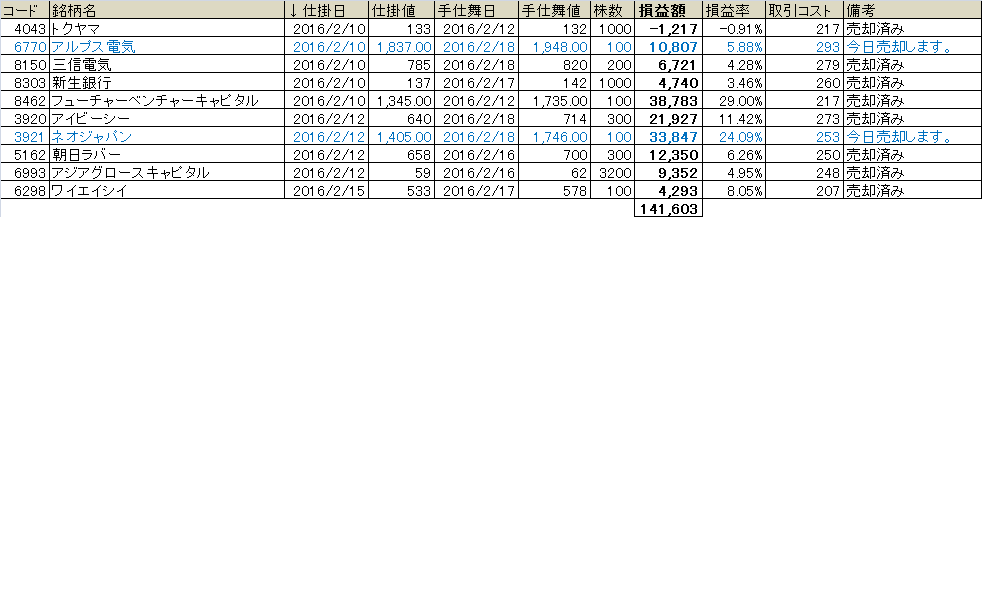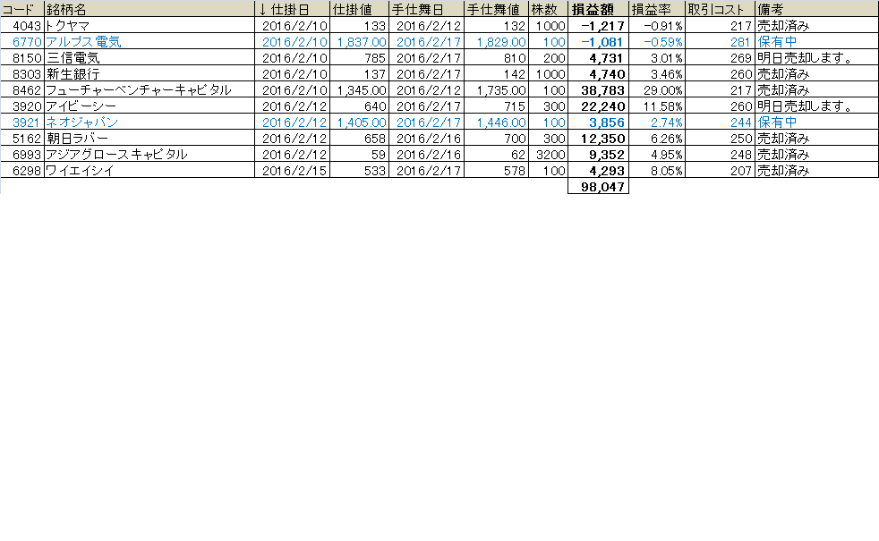 2月10日からのスイングトレードの状況です。