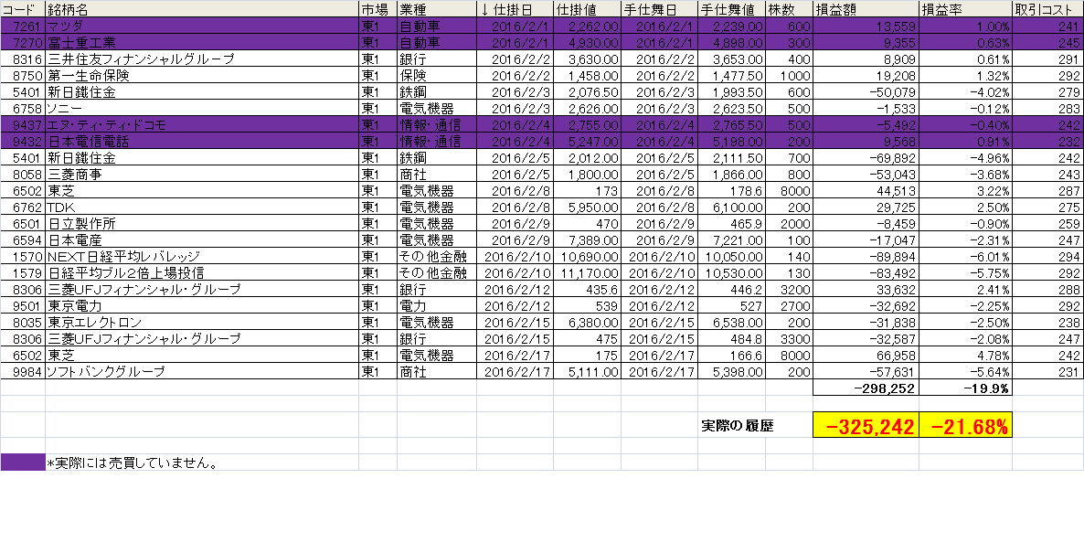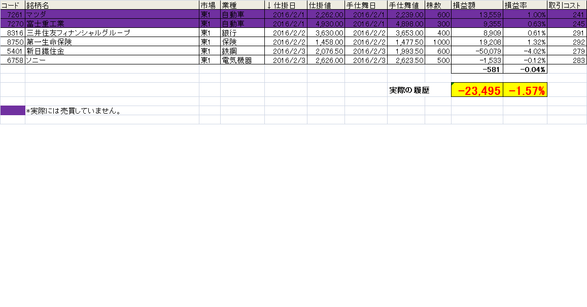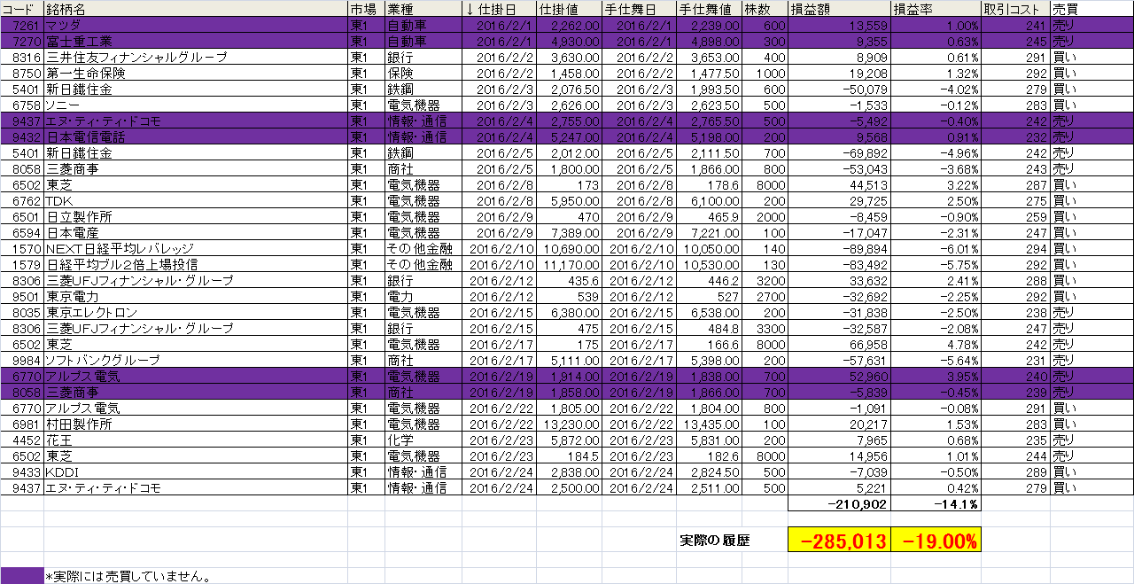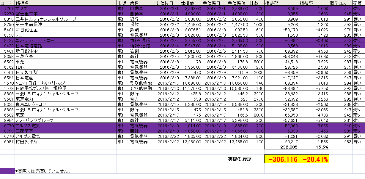 2月1日から今までの結果を掲載します。この手法を毎朝トレード前に配信しています。興味のある方は申請してください。無料ですし、かついつでも配信解除可能です。よろしくお願いします