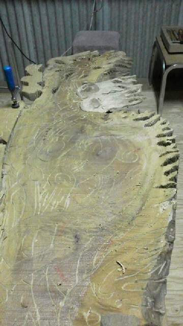 ブログ開設から1年、ブログ中断からほぼ1年長く休んでいたようだったが、まだたった1年仏像は父親がなくなったのを境に制作意欲がなくなって、1年8ヶ月何もせず。先日、青蓮院の今城師が訪ねてこられて、釈迦坐像を買うのだと意気込んで居られて、丁度そのときに格納庫に移していた彼の師から依頼されていた不動王明王を見てもらったら、盛んに欲しそうにされていた。本体はほぼ完成状態だけれど、火炎光背がほとんど手つかずで、もういい加減に再開せねばと思っていたところ。今城師の言葉で背中を押されて、作業場の2階へ移して彫刻再開。当分は火炎光背に時間がかかり、ブログに状況を記録せんと、ブログも再開。