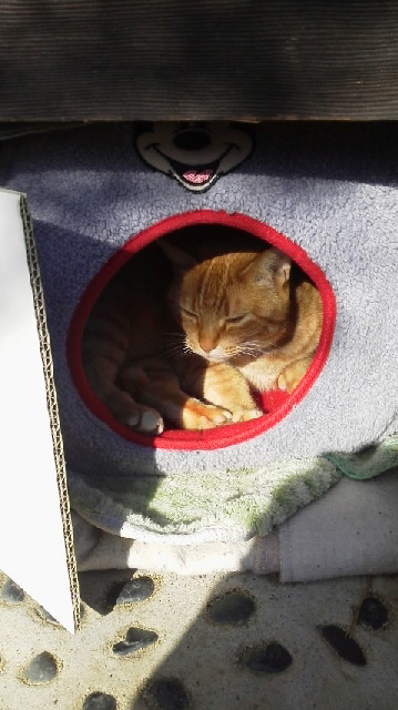 今シーズン一番の寒気が入り、西北西の強風が吹き荒れて、外で飼っているネコちゃんも寒そうなのでホームセンターでかまくら風の小屋を購入。 いつも寒そうに寝ている床下のダンボールの中にセットしてやったら、早速子猫のほうが入り込んで暖かそう。 親猫の方は少々狭いのかなかなかもぐりこもうとしない。 もうひとつプレゼントしなければならんか。 1個2600円だからふたつにしたら、孫にやる小遣いよりも多いな。 綿繰り機の組み立ては本日あまりの強風で寒さのため、作業場ではストーブを焚いても辛抱たまらんほど寒いので中止。 持国天彫刻もお休みだ。