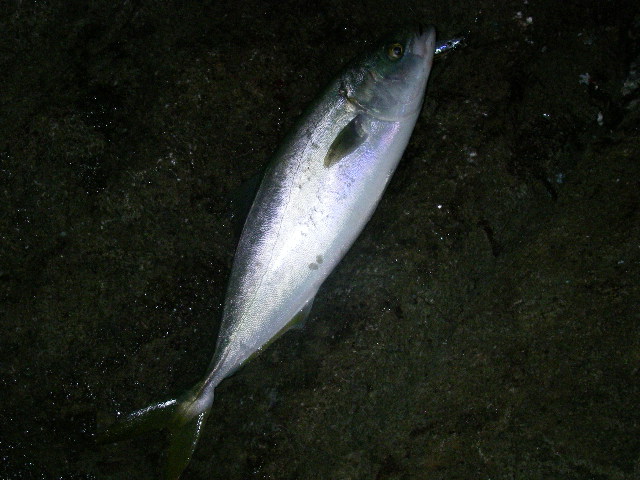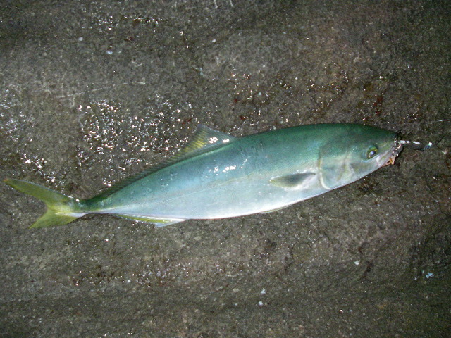 台風後、イナダ祭りの状況が芳しくないですが今朝も状況調査兼ねて朝練して来ました。Pに着き開始しますが、反応が有りません。今日もダメかな~~~等と考えていると。アタリが。メッキじゃなくてイナダの引きです。先ず1尾Getです居てよかった~~~。薄暗くて気が付かなかったんですがベイトが居ます。すると、余り大きく無い魚がバシャバシャしだしたな~~。と、思っているまに始まりました。ボイルボイルボイル鳥達も差してきます。ジグでドーン。プラグでもドーン。とどめは、ルアーに食い切らない稲田君が足元まで来ているのでシーバスでやる8の字にドーンです。 お祭り騒ぎです。瞬く間にこんだけ釣れました。1時間足らずで自己最高の9尾です。ツ抜けを狙ってキャストしますが帰宅時間になりストップフィッシング。イヤ~~~~楽しかったです。 Ya○iさんゴメン釣れちゃいました と言う事でイナダ祭り継続中です。 一応総釣果です
