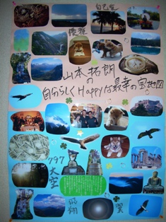 クリアーの宝地図セミナーにて宝地図を作ってきました初めて宝地図を作ったのですが、やり始めると面白いもので時間が経つのが早い早い出来上がったものはこんな感じデス…