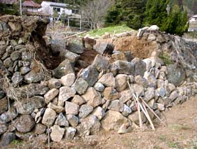 息子が所属する少年野球チームが出場する駅伝大会の応援に行ってきました。息子達が通う小学校は、児童数44名の小規模校です。4年生以上の野球部は、普段まさに全員野球で頑張っています。12区間でたすきをつなぐ今日の駅伝大会も、他のチームが6年生を中心に出場する中、4年生も交えたチームでなんと3位で走りきりました。息子も今年4月には中学生になります。ただ、残念なのは中学校には野球部がないのです。なんといっても3学年で30数名という超!小規模校なのです。野球を続けたいという理由から、他の中学校に進学する子もいます。それでますます生徒数が減る、という悪循環です。いかんともしがたい状況なのです(T▽T)今日の午後は石垣積みをしました。正確に言うと、石を積んでいく作業は親父がぼちぼちとやっています。そのために日曜日を利用して、バックホーで床堀りしたり、石を運んだりするのです。棚田の石垣は決して永久に壊れないわけではなく、やはり補修作業が必要になります。建地ブロックを使うこともできるのですが、やはり自然石を使って積んでおきたいものです。不思議なもので、崩れたところをあらためて積もうとすると、以前あった石では何故か足りなくなります。もともと石垣があったのに石が足りないのは本当に不思議です。
