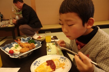 嫁さんがつまみみたいなおかずを作るものだから、ついつい杯が重なってしまったやまやろうです。起きても浮遊感。そんな身体で、町内会の新年会に参加する。家族5人で行くつもりであったが、昨日午後に突然むすめの具合が悪くなって、嫁とむすめと次男坊はキャンセルとなってしまった。温泉好きなむすこをやまやろうが連れて行く。場所は、北山鉱泉の仁右衛門家であります。公民館からバスで移動した。てことは飲んでも平気ってことさ。持ち込みビールも多数。先ずは大部屋で缶ビールをプシュッと開ける。昼間から酒が飲めるちゃ、いいなー。昼食の宴会まで時間があったから風呂に行った。同じようなタイミングの人々で湯船はイモ洗い状態。半身浴でじっくり汗を出した。湯上りにもビール。最高です。12時から宴会。お品書きが付く和食フルコースである。乾杯ビールをそこそこに、やまやろうは日本酒にした。だって料理がそうさせるのだ。熱燗をきゅいきゅい飲みながら杯を重ねる。むすこの料理は洋風で揚げ物が多い。エビが苦手だからエビフライを2本ももらったし、残ったカレーコロッケやらチキンナゲットやらも食べた。これらはビールのお供となった(酒はちゃんぽんです)。大満足で15時にバスに乗って帰る。