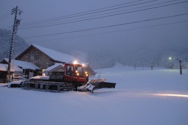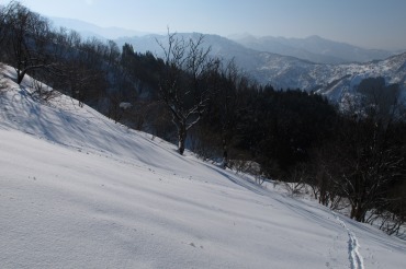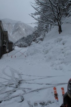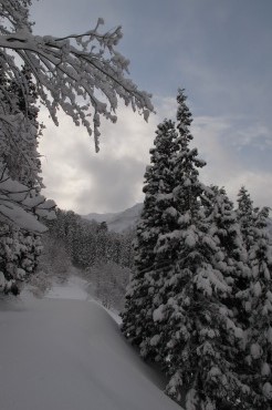Yたさんよりメールがあり、G会館にワックス済みの板を置いたとのこと。やまやろうの板が短くて深雪に弱いことを嘆いていたところ、もう少し長くて取り回しの良い板を、自分のストックの中から用意してくれたのだ。会社帰りに会館に寄ってみると、そこにあるのはベクターグライドのオムニであった。金具はブラックダイヤモンドのO1である。有り難くゲレンデで使わせてもらい、自分の滑りに適した板の指標としたい。この板で得た感覚を元に、新しい板を買うつもりである。今シーズンは靴を買ったから嫁からはNGと言われているのだがー。宇奈月・大原台へ向かう途中の林道。途中に倒木があったところでは通過に難儀した。