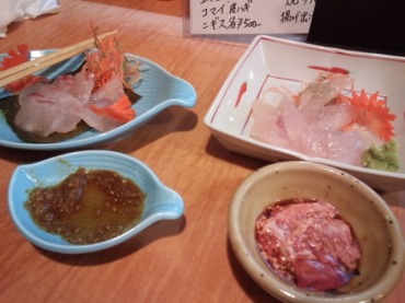 ビール系ならたくさん飲んでもひどくならないからいいな、と思ったやまやろうです。でもコソ酒で500を2本飲むのはどうかと。午前から昼にかけて会社にいた。出張精算をまとめておかないと大変なことになるもので。来週の会議で求められるであろうから、出張報告書も早めに手を付けておこう。遅い昼食はらーめん世界。広告に入っていたクーポン券を使ってチャーシューを追加した鶏塩ラーメン。店員の大声が響きまくり、元気があっていいのだがもう少し大人しくてもいいのではー。今年は写真コンクールに投稿することを目標にする。先ずはカメラを常に持ち歩くことにした。魚津漁港に寄ってみると、冬型蜃気楼が発生していた。これだーと堤防に上がってパチパチ。後から拡大画像をトリミングすれば、インターネット上で見る分には申し分ない蜃気楼が写っている。フェイスブックにアップしたら、結構ないいね!が付いた。ありがたやー。夜はお忍び?で新年会。電鉄魚津18時待ち合わせ。で現れたのは女性ではなく!山ちゃんである。店を予約しておいてくれていた。ちょっと歩いて、円陣。カウンターに座り一番搾りで乾杯。バイ貝のお通し。律儀なやまやろうは、頼んだものを写真に撮っておいた。これはヒラメとカワハギの刺身。肝を付けて食べると最高です。二杯目からは立山の熱燗にした。山ちゃんは自転車で来て雨に濡れたものだから、温かいものが欲しくなったのだ。牛すじ煮、あん肝を追加。もう立山がきゅいんきゅいん入ってしまいます。あん肝をカワハギの肝に付けて食べれば、ダブルプリン体で通風街道まっしぐら?! カワハギの干物は適度に身が締まって旨い。ほろほろと身をかじりとってこれまた立山きゅんきゅん。最後に鶏の唐揚げ。皿の上でごろんとした存在感。ジューシーでいいわ。これで締めて一人4000円であった。若い店主と奥さんで切り盛りしている。結構賑わっているところから、分かっている人は分かっている店なのだろう。満足して店を出たがまだ20時台。JR魚津駅方面に歩く。雨も上がったしね。それにしても寒い。人が余り歩いていないことも寒さを助長させる。往時の魚津の賑わいを見てみたかったものだ。二次会はやまやろうお勧めの串焼 あっちゃん(仮)である。定番8本セットにカエル串を追加し、立山熱燗一合を合わせた。たれ串は濃い目の味だ。二杯目は冷やで。ここの串カツは大きくてアツアツでサクサクでお勧めです。そうなるとビールか。中瓶ビールを最後に飲んだ。一人2300円。安く旨く串を食べたかったらココだな!歩いて帰宅。22時台。こらどまはまだ寝ていなかった。やまやろうは何故か服のまま布団に入った。