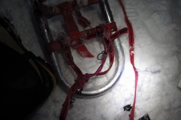 週末は嫁も酒を飲むので、やまやろうは気分を大きくして酒を飲める。高血圧のためには節酒が必要なのであるが、こらどま食事終了後の嫁との楽しい会話が弾んでしまい、ついついつまみ系を食べてしまう(酒もね)。炭水化物系は避けよう。と言いながら追加のつまみは100円のイカフライ。こらどまの空手教室のお迎えまでに時間があるので、アルペンに寄ってみた。うを、軒並みスキー板のセールが始まっているぞ。嫁が必要としている(行くかどうかは知らない)中で、30~40%引きは魅力的だ。おらもテレマークの金具が付けられるのならアルペン(で売っている)の板でも構わないのだが。スキーの小物が気になる中では、今回はゴーグル。ひとつ持っているが使い勝手は悪い。どうしても曇る。YASUHIRO先生はオーバーグラスを使っているようなので、アルペンで見てみた。意外にもあったのだ。種類はいくつかあり、偏光グラスかサングラスか、あとは色の濃さかな。色についてはとても微妙なもので、どれも同じ気がしたが付け替えてみて一番良さそうなものを選んだ。ヘルメットも欲しいが、選ぶ時間がなかったのでまた今度。ラッピーのセールはいつかなー。とりあえずゴーグルに代わる(曇らないであろう)保護メガネがゲットできたことは良かった。ずれないようにバンドも追い銭した。オーバーグラスは明日はくのりに持っていきますぞ。雪山合宿二日目の朝であるが、ワカンバンドが切れた。このままではラッセルができない、かなり大きな問題なのだが、山ちゃんから細引きをもらって応急処置して事なきを得た。これアルミ本体も傷んでいるから、全部とっかえでもいいのかなという気もする(アルミワカンは消耗品です)。