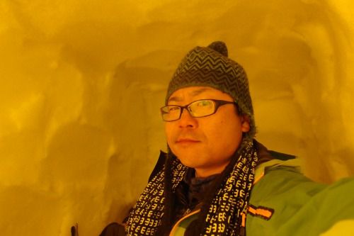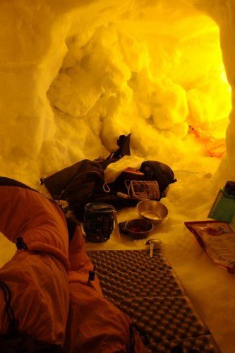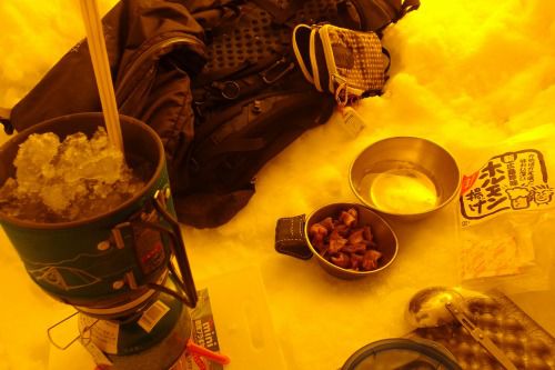 雪洞内でのやまやろうは、こんな感じ。道中、大汗