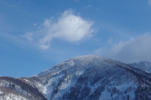 三ツ倉山は、樹氷で真っ白だ。頂の上にぽっかり