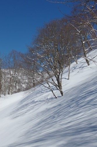 樹間か尾根上の斜面を選んだ。そうすると切り返し