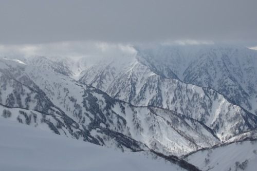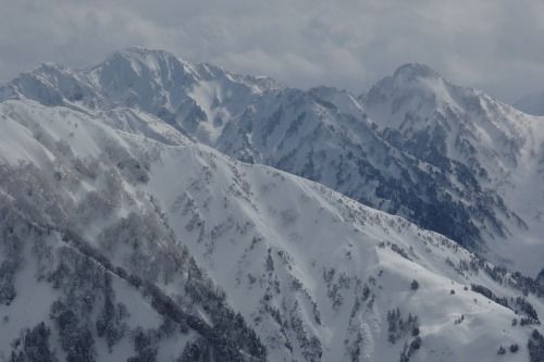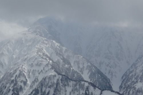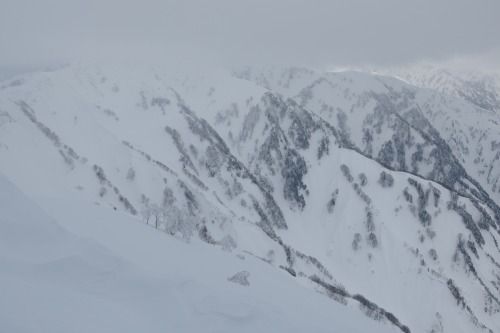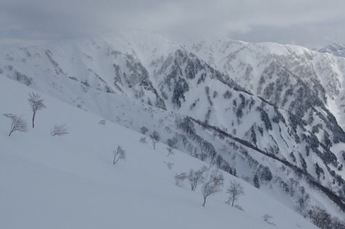 衝立のような毛勝山西北尾根には強風が当たり、