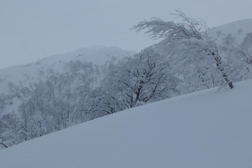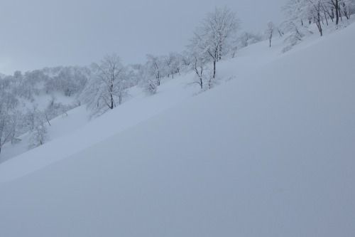 は密度が濃いうえに雪が硬く、スキーには不適。