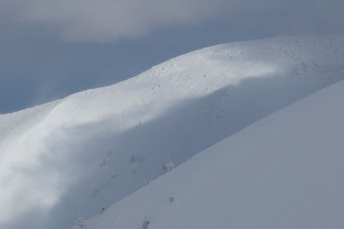 尾根上の雪を吹き飛ばしている。