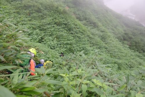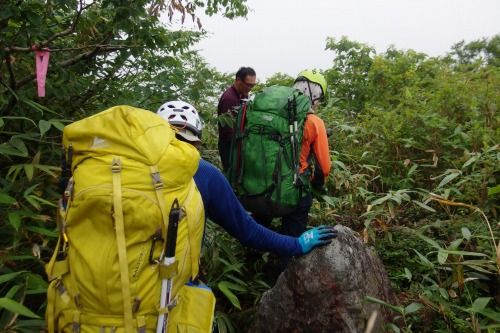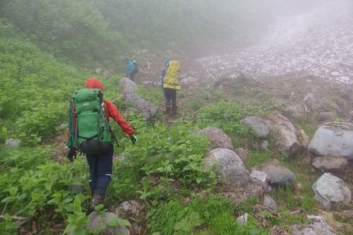 G会のお盆山行。計画初日に雨となり、ルート変更