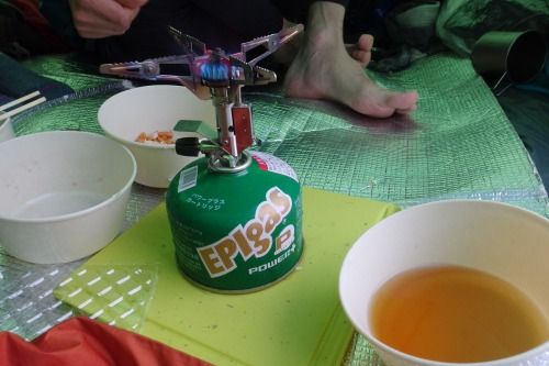 14:20 テント入り、暖かい。EPIガスバーナーを