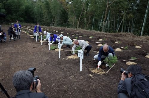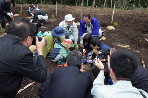 その後で参加者も一斉に植樹を始める。何と市長が