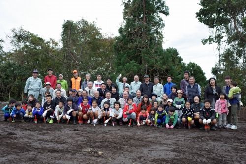 最後に記念撮影。子どもたちと共に、苗木も大きく