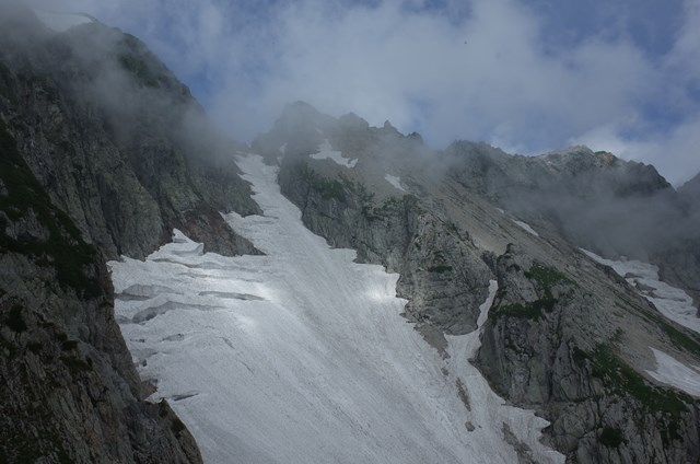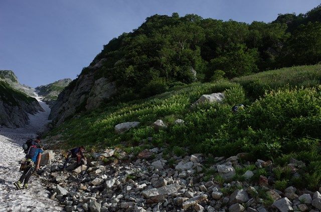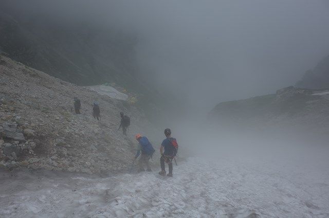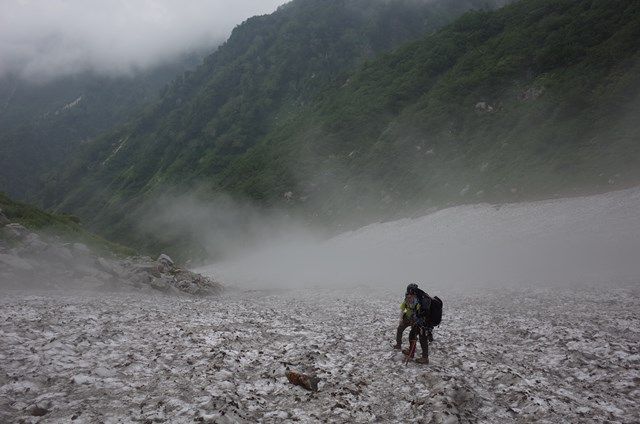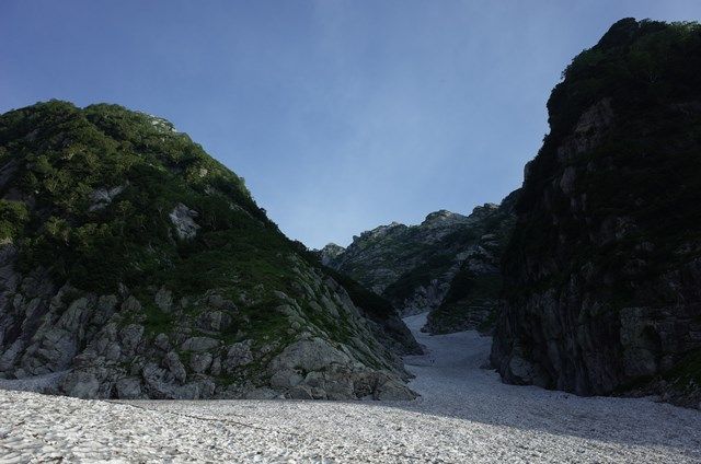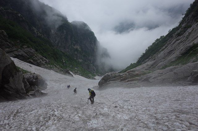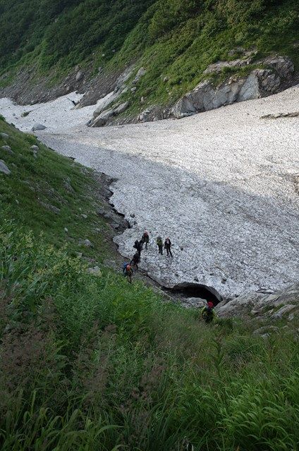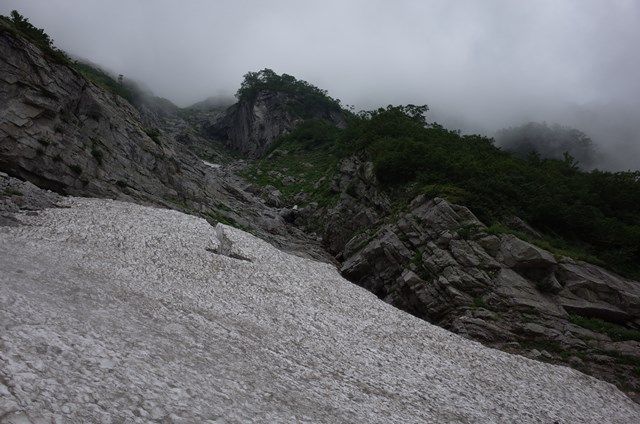 6:07 南無の滝手前まで雪渓を進んでしまい