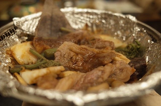 牛肉の朴葉味噌焼き。唯一の魚介