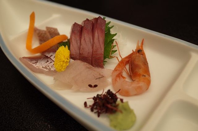 刺身。四方漁港直送の新鮮な魚介だ。