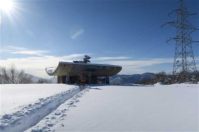 山名標識があるようだが雪に隠れて分からない。