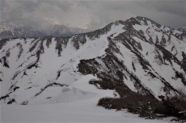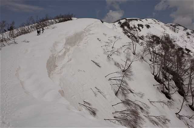 北駒ヶ岳までは、巨大な雪庇が連なる尾根。