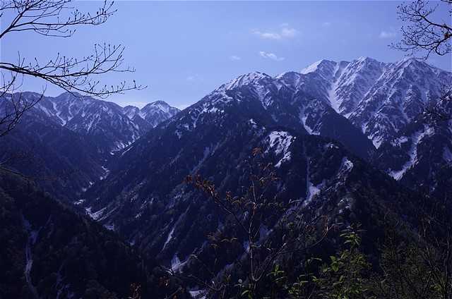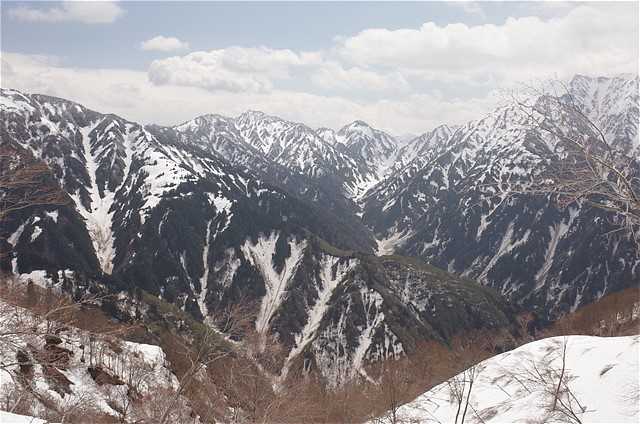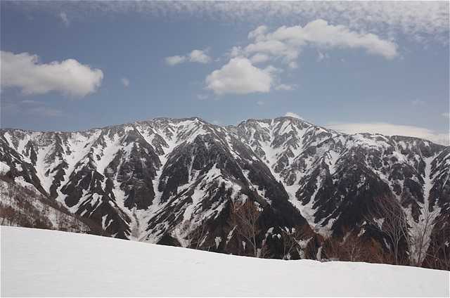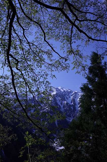 新緑と残雪。