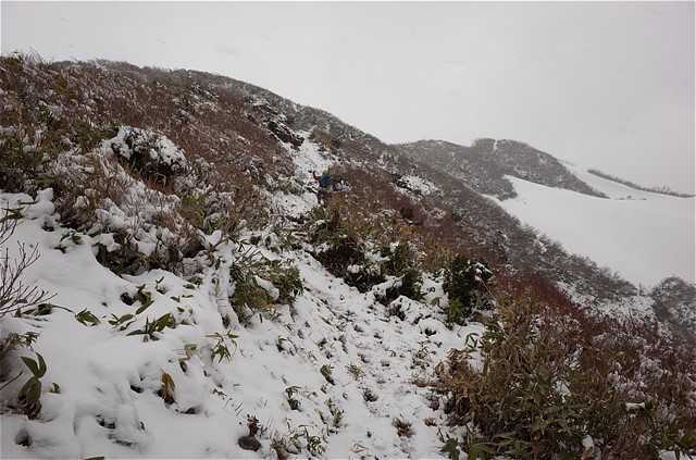 あまりに寒くてクラッグジャケットと雨具を一度に着た。手指はしびれた。上空は徐々に鉛色の雲に覆われる。