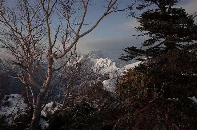 テントから顔を出すと後立が見える。風あり。撤収作業開始。