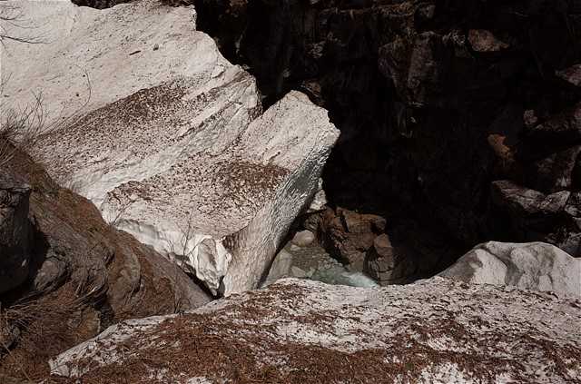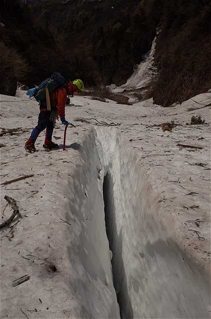 9:33 1780m バックステップでシュルンドを越える。割れ目の下では水が音を立てて流れている。