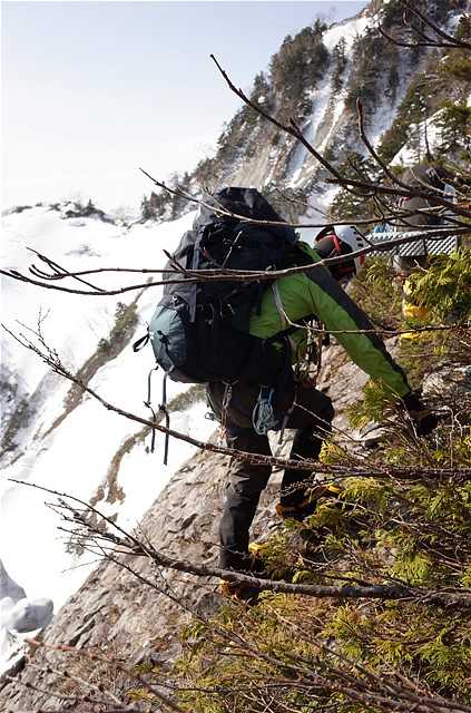 ここは西側から巻けたかもしれない(過去ここでロープは出さずに通過している)。