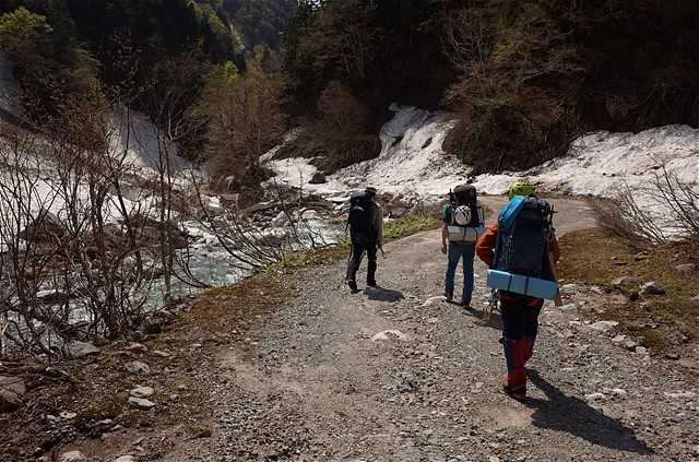 10:47 作乃丞谷出合い。左岸にトレース3人分。「天国の階段」で見た登山者のものだろう。