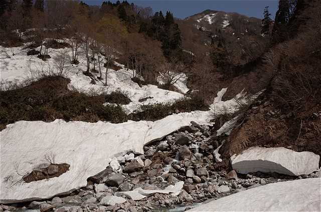 12:42 1010m 徒渉を懸念していた赤倉谷出合いは雪で埋まっている。よかった。