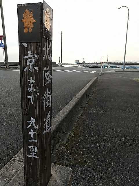 気分を変えて海沿いを走る。魚津から京まで91里だそうだ。