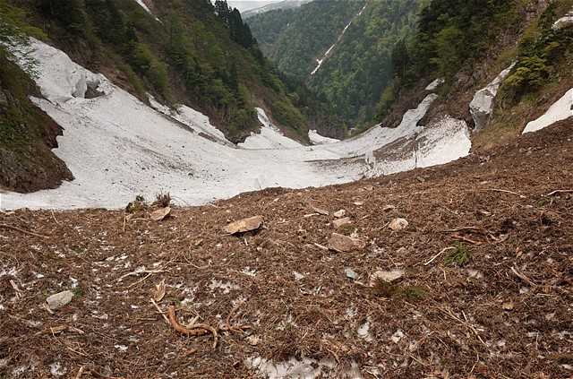 降り口は雪が切れているが、直登ルンゼはまだ滑走できそうだ。