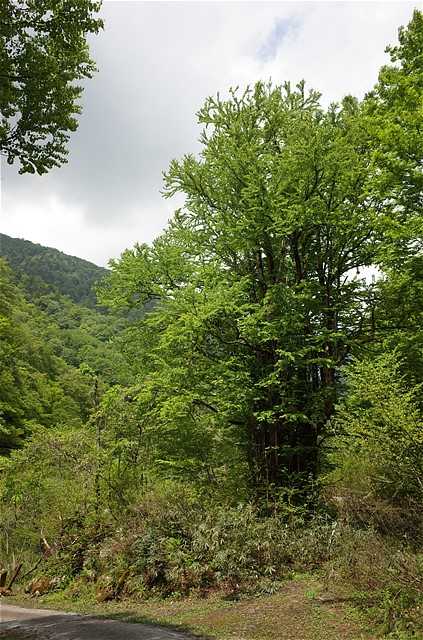 阿部木谷の林道沿いには巨樹が多い。これはタテヤマスギ。