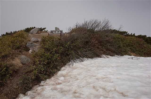 女性登山者が登ってきた(2人組のうちの1人)。なかなかガスは晴れない。風があるので寒くなってきた。アウタージャケットを着る。