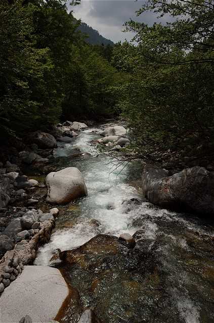 前日だかのシュプールが白く蛇行している。そこは石や木っ端が取り除かれていて滑りやすい。
