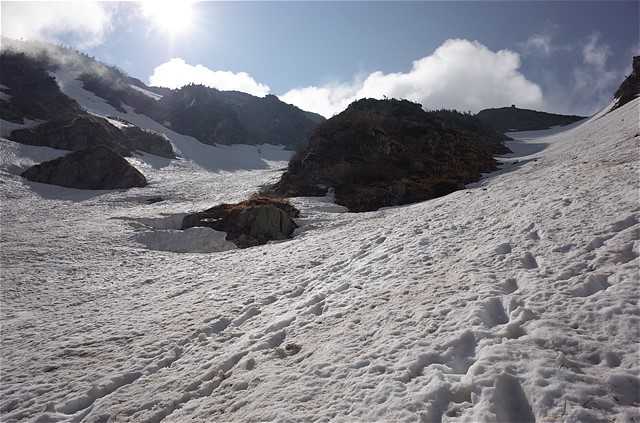 9:44 2364m ボーサマのコル。ピッケルを持ってきていたが、ストックで登り切ってしまったw