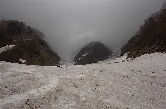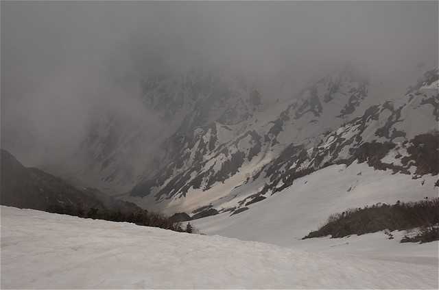 中谷はガスに覆われ始め、谷の状態はよく分からない。