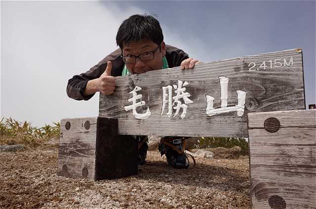 9:57 2408m 毛勝山頂。4時間10分での登頂は、予定よりも早かった。