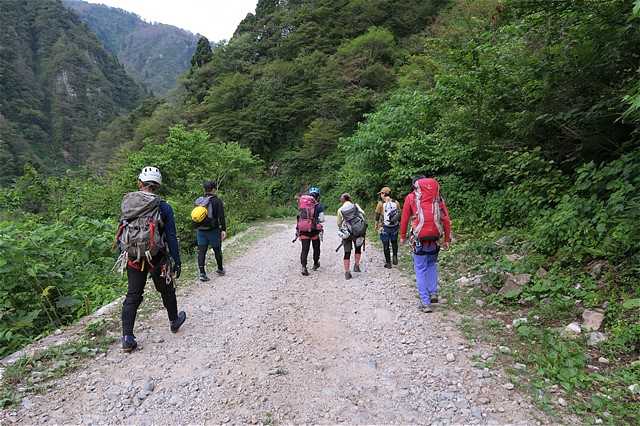 6:35 アプローチ開始。市道東又線を引き返し、沢訓練として成谷を遡行して成谷山に出て、東又登山道を下降する計画。