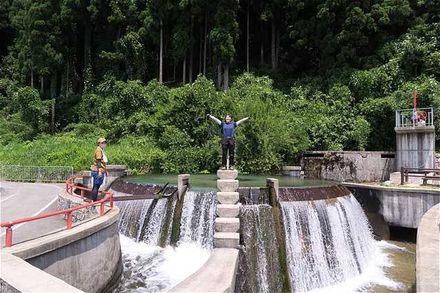 先頭で歩いていたが、休憩したくなる。水やトマトジュースをやたら飲みたくなる。連続堰堤の登りで大量の汗をかき、熱中症ぽくなったようだ。足が出ないし軽いめまいもする。