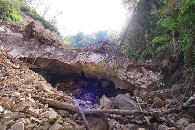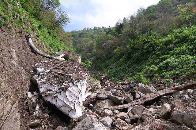 8:30 919m アカンもの。今にも崩れそうな雪渓が谷の中を埋める。右岸から乾いた音を立てて、落石が飛んでくる。
