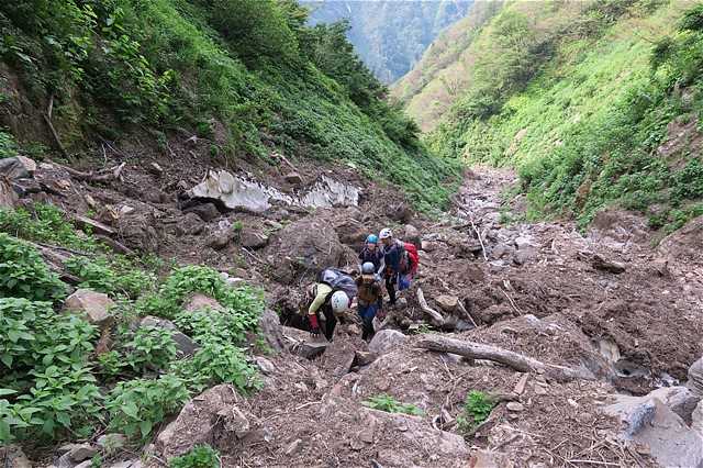 7:17 547m 出発。東又谷の流れは少なく簡単に徒渉できた。
