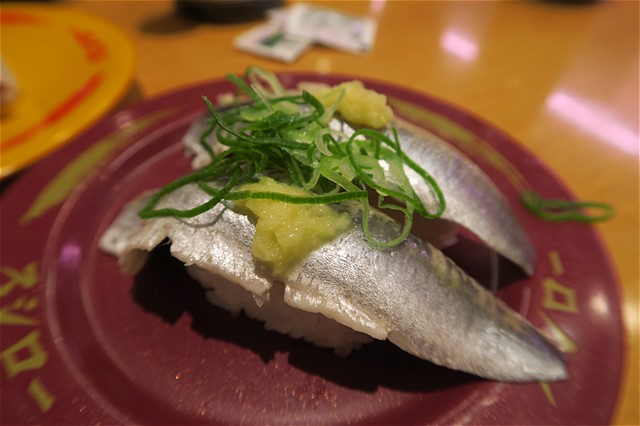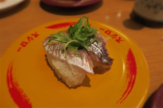 光り物(アジ)。お代わりした。スシローでは光り物を中心に食べておけば、ハズレはないと思う。