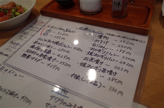 メニューその1。定番メニュー。他のカウンターの人もここから選ぶことが多い。締めのごはんもあるよ。